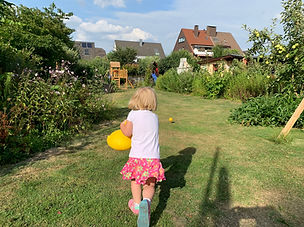 Das Freie Spiel findet täglich auch im Freien statt. Nur in besonders schlechten Wetterlagen bleiben wir im Haus. Die Tagespflege findet fast ausschließlich auf dem Grundstück statt. Der Gang zu Spielplätzen ist nicht erforderlich, da sich in der privaten Nutzung alle typischen Angebote wieder inden. Das schafft für die Kinder Routine und vertraute Gewohnheit, die ein entspanntes Verhalten begünstigen. Die Unfallgefahr ist mit der Meidung öffentlicher Plätze ebenfalls etwas reduziert. Vorbereitende Tätigkeiten erledige ich außerhalb der Öffnungszeiten.